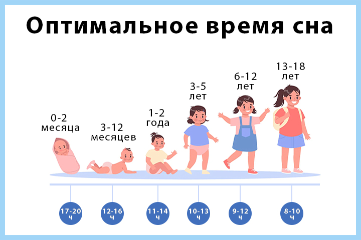 Важная часть детского ЗОЖ – здоровый сон и стабильный режим отхода ко сну. Это влияет на когнитивные способности, улучшает память, позволяет быстрее усваивать материал во время учебы. У детей циркадные ритмы (естественные циклы сна и бодрствования) начинают формироваться примерно в возрасте шести недель, становясь регулярными к 3-6 месяцам.