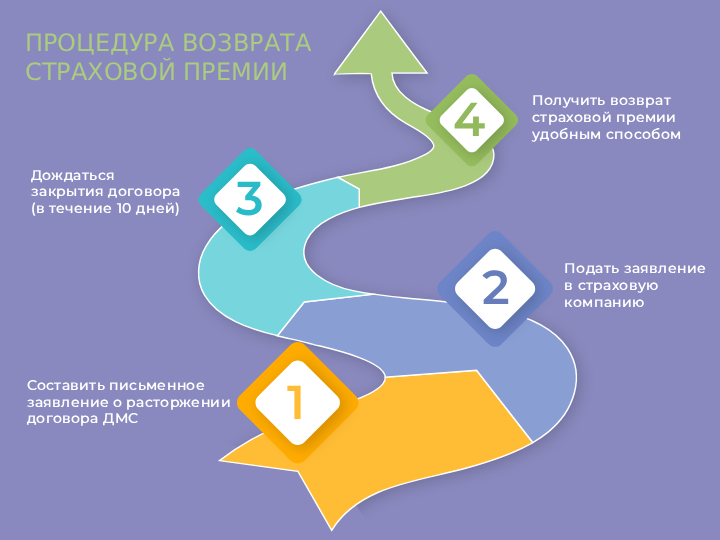 Чтобы вернуть страховую премию, достаточно обратиться в течение периода охлаждения с заявлением о своем желании расторгнуть договор. Как правило, у каждого страховщика есть стандартная форма этого документа. Далее следует дождаться возврата средств на счет плательщика. Однако если договор страхования уже вступил в силу и/или вы уже обратились за медицинской помощью, вернуть деньги будет нельзя.